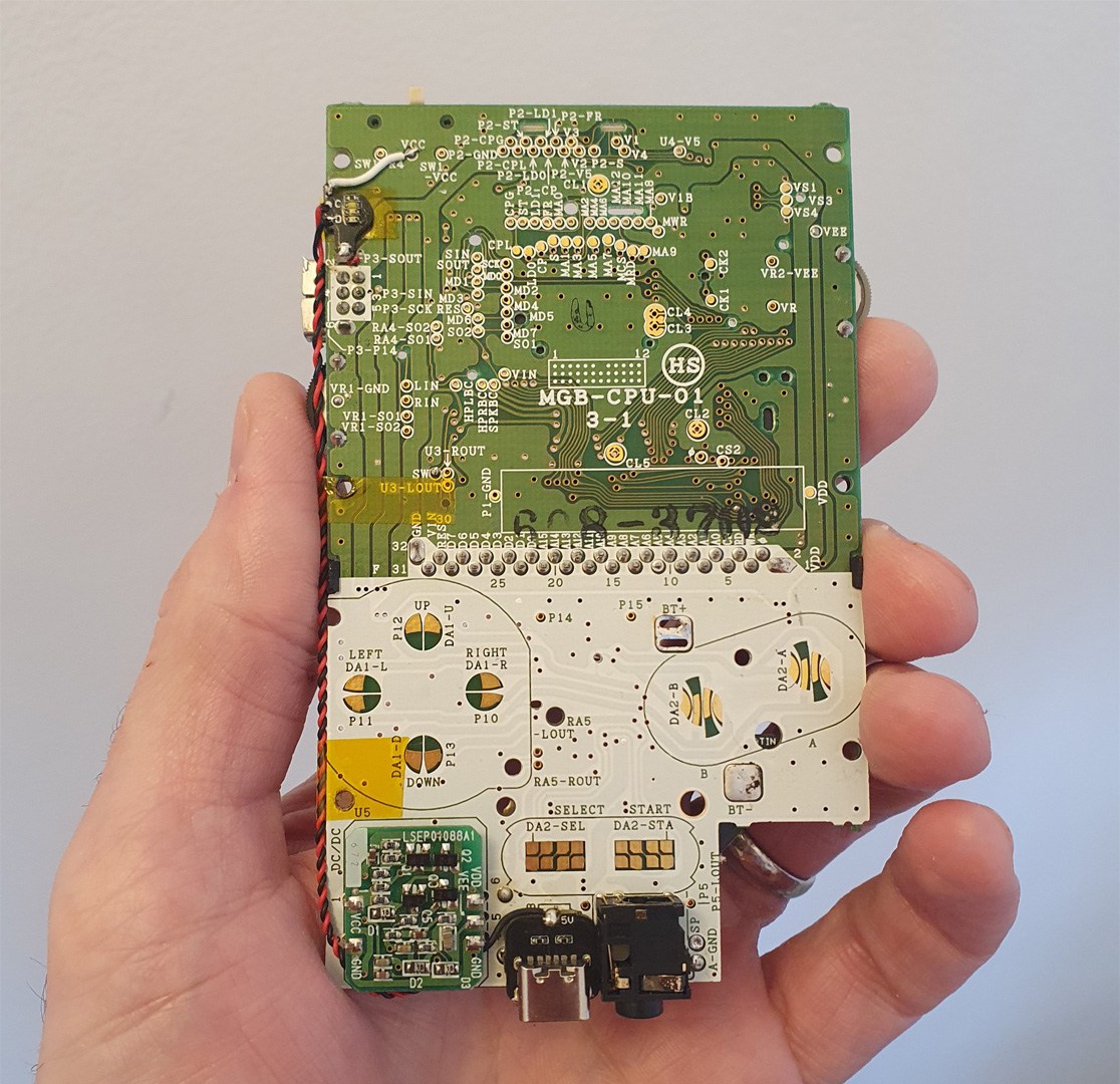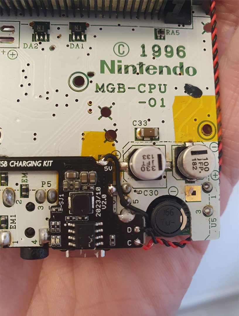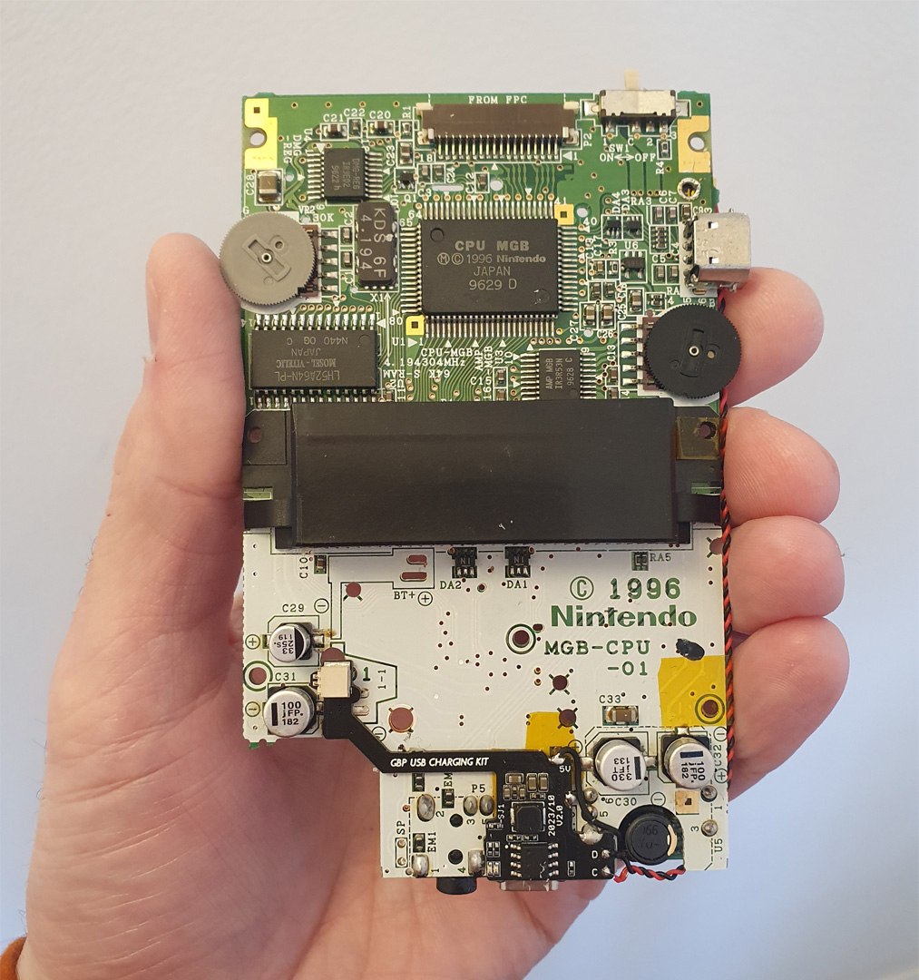 The Game Boy Pocket USB-C Charging Kit is a circuit that allows you to charge a Nintendo Game Boy Pocket via USB-C and use a Li-ion battery instead of AAA batteries.